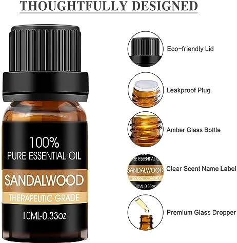 Sandalwood Essential Oils Organic, 10ML 100% Pure and Natural Sandalwood Essential Oil for Aromatherapy Diffuser – Sandalwood/0.33 Fl Oz